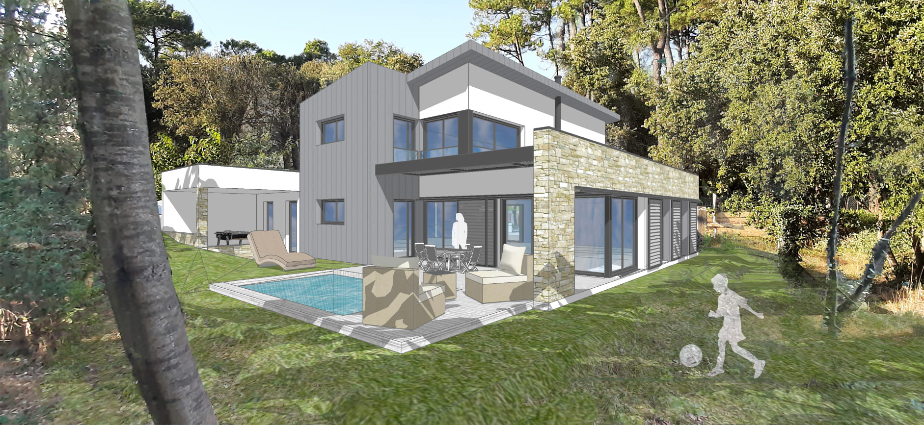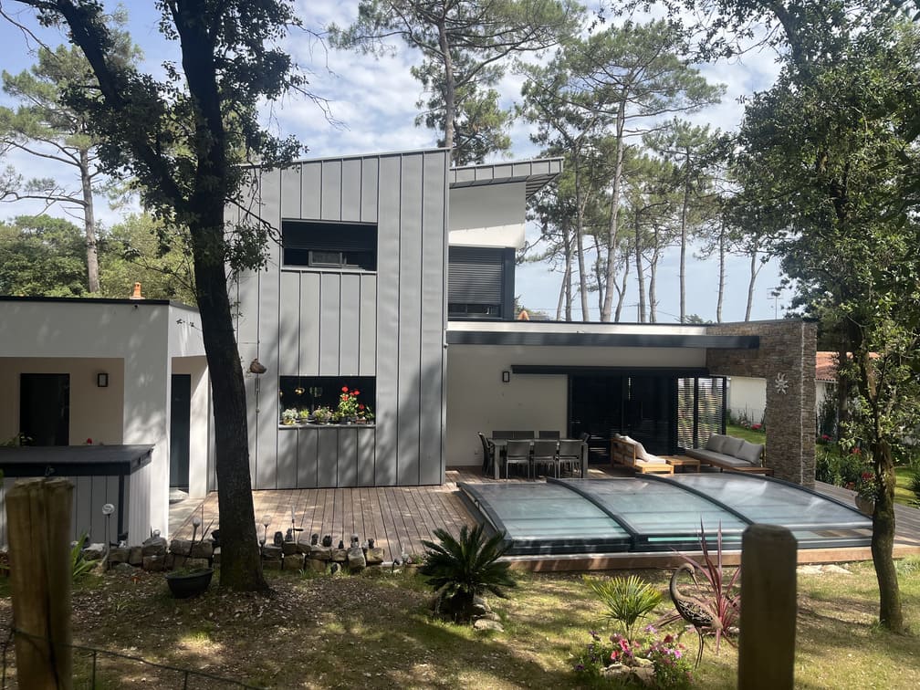Le résultat : une construction contemporaine et bioclimatique au milieu des pins, où la petite faune sauvage et le bruit du ressac participent à la sérénité retrouvée du couple dans leur nouveau lieu de vie.