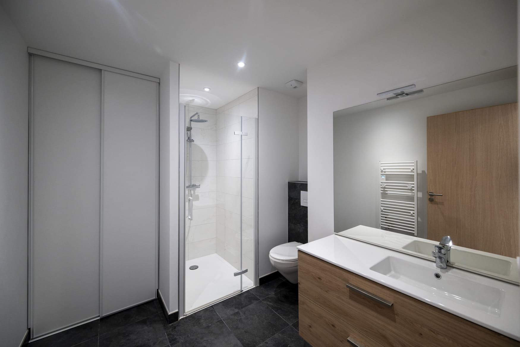 Le dernier étage constitue un véritable privilège : un logement unique, accessible directement par ascenseur, profitant d’un rooftop panoramique offrant une expérience résidentielle exclusive.