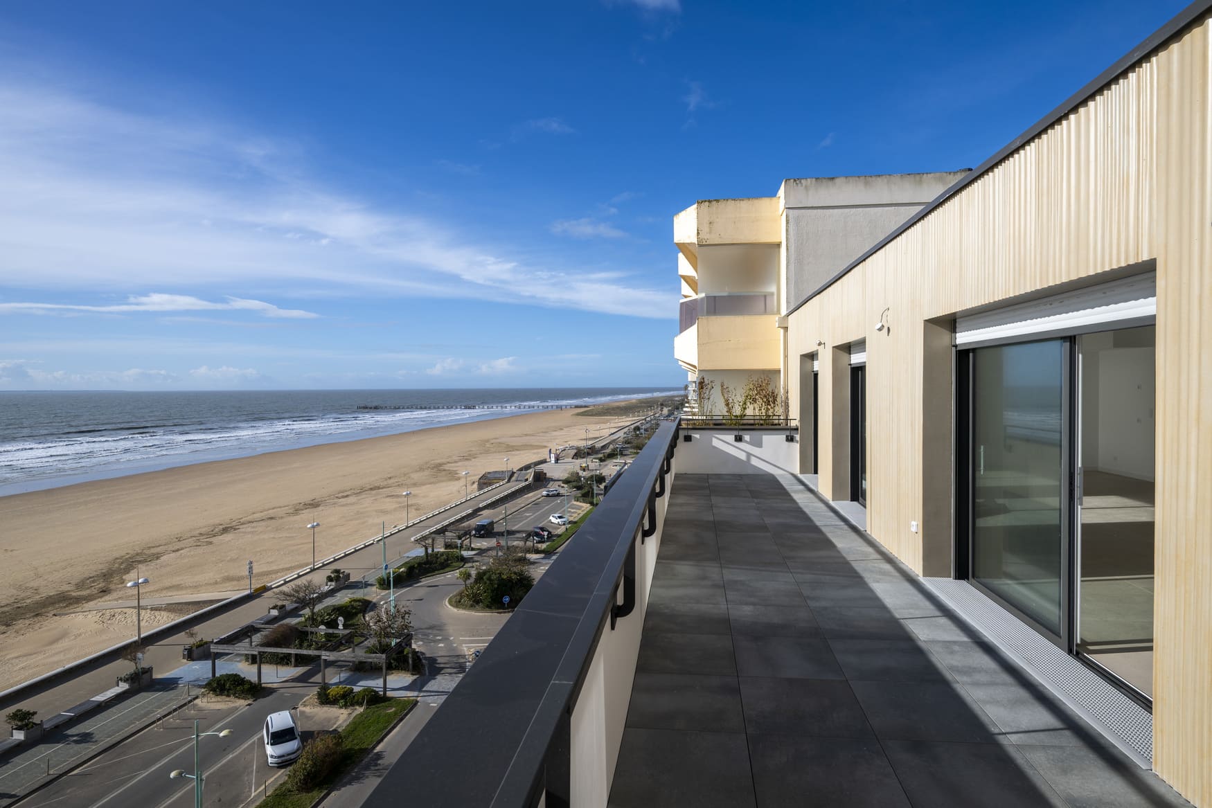 Nous avons confié ce projet à Cédric Chairou, architecte, pour concevoir une résidence de standing en front de mer. Sa vision architecturale a permis de tirer pleinement parti du site exceptionnel, en offrant des logements lumineux, confortables et des vues spectaculaires sur l’océan. Le résultat est à la hauteur des ambitions du projet.